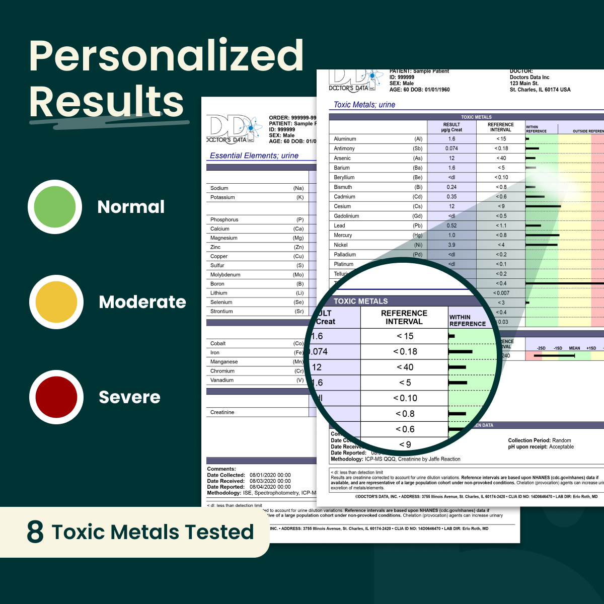 • This test tells you if you have harmful heavy metals in your body. It helps you and your doctor take steps to reduce your exposure and improve your health.