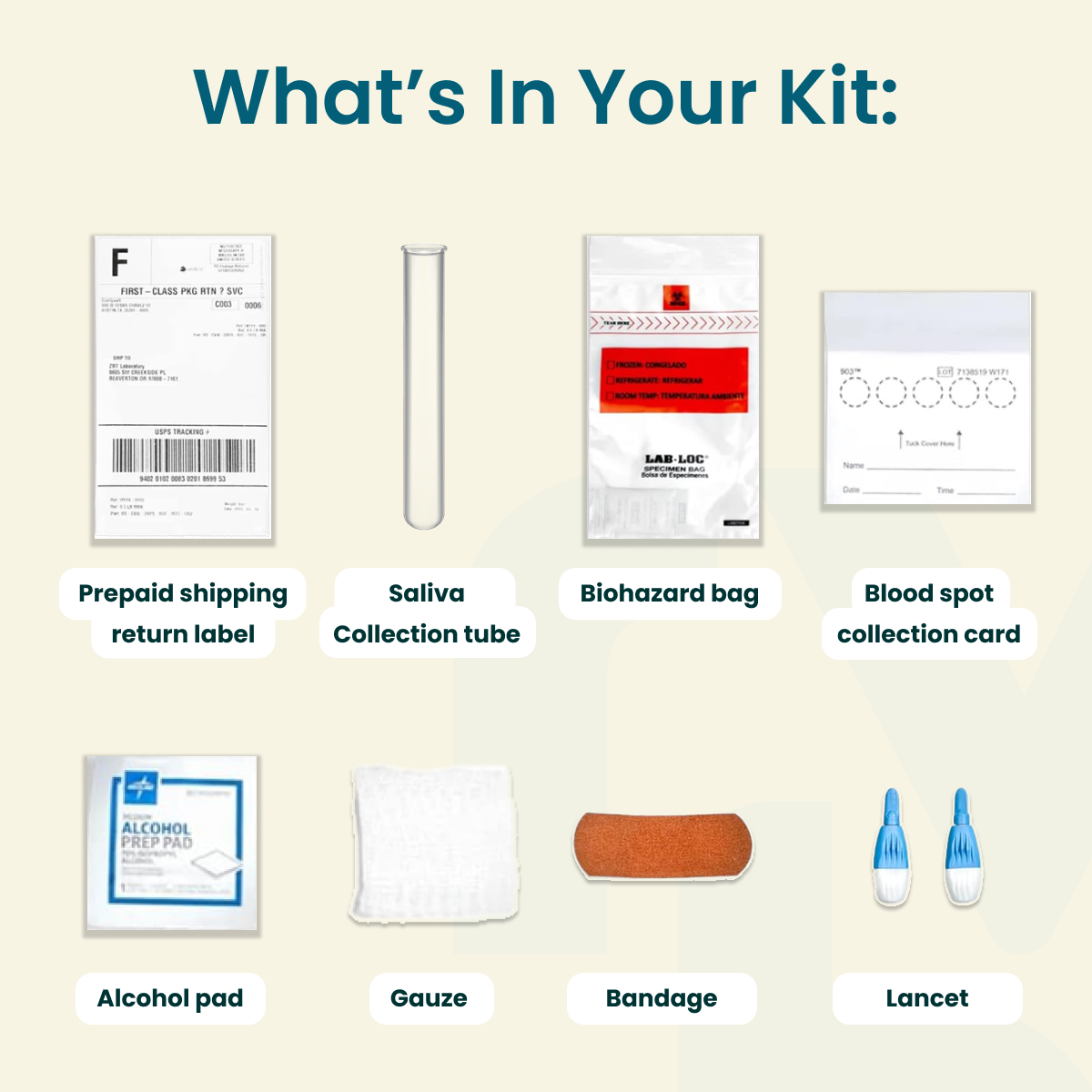 • Easy Collection: Collect your saliva and blood samples at home with simple instructions.